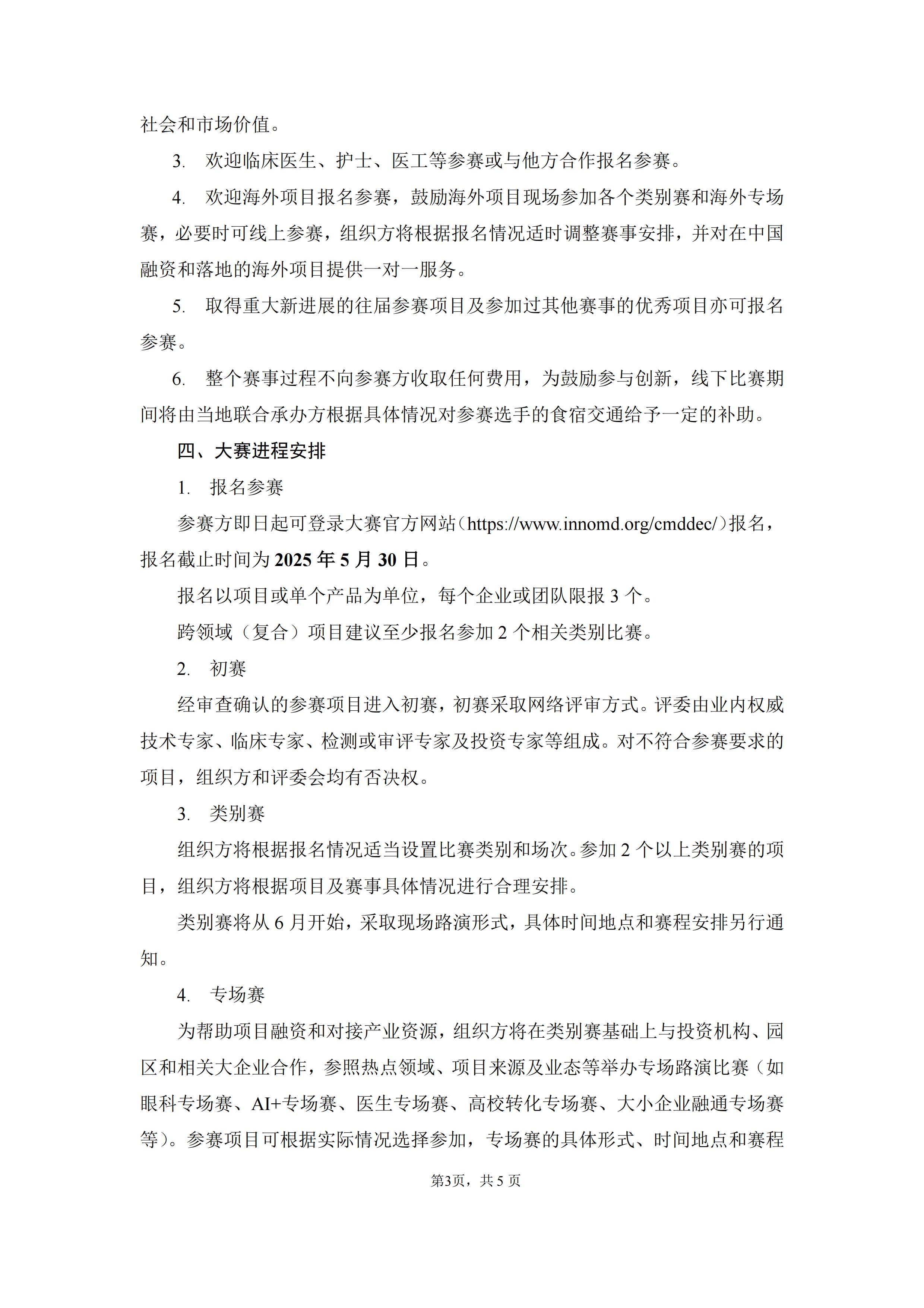 参赛方即日起可登录大赛官方网站(医疗器械创新网网://wangweiwangluo.com/cmddec/)报名,报名截止时间为2025年5月30日。